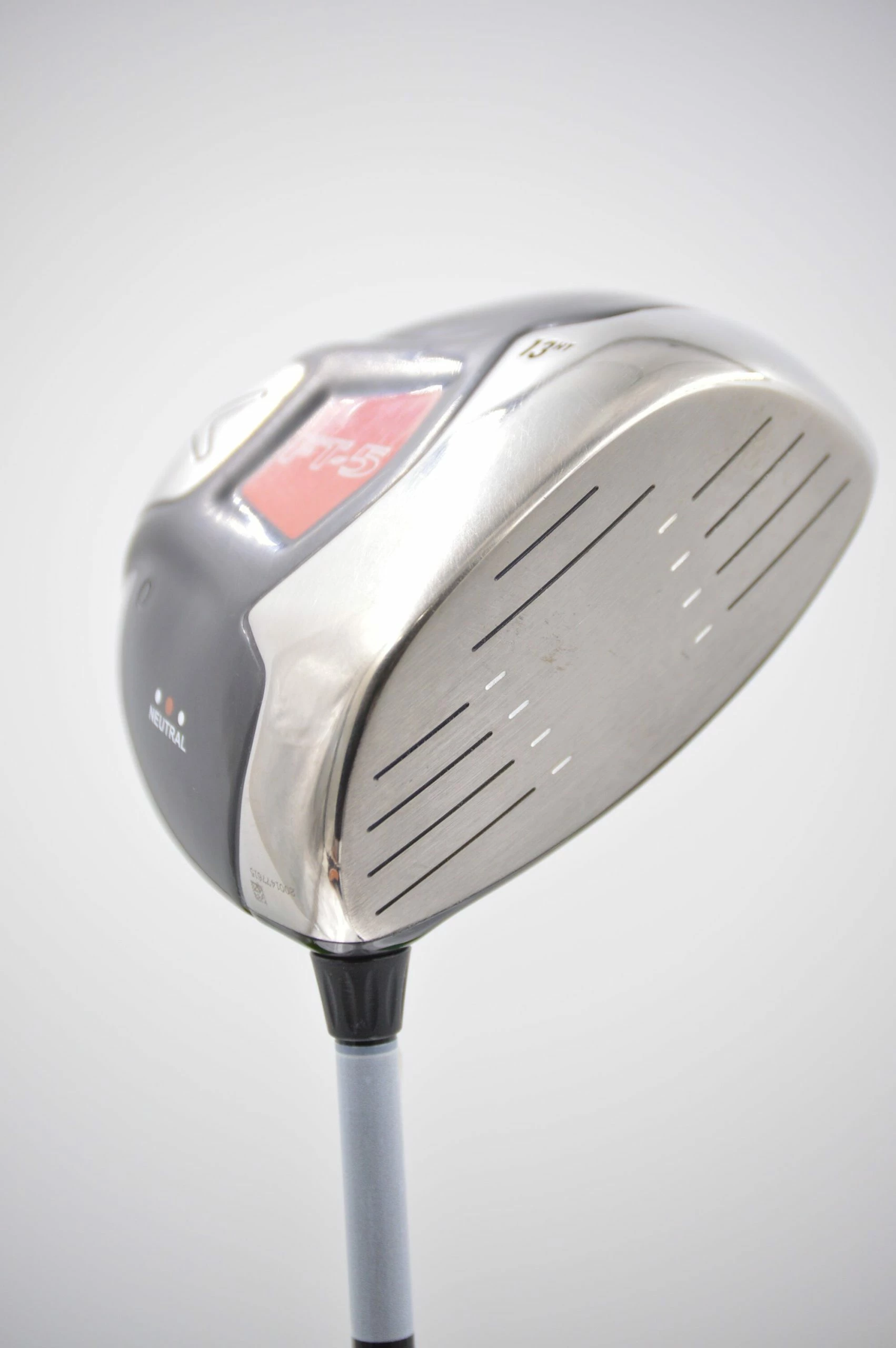 Driver is in good condition, with normal wear to the head and face. Loft is 13 degrees. Shaft is a Fujikura E Fit-On 150 in S Flex with a Winn Polymer Cord Midsize Grip. Head cover included.
