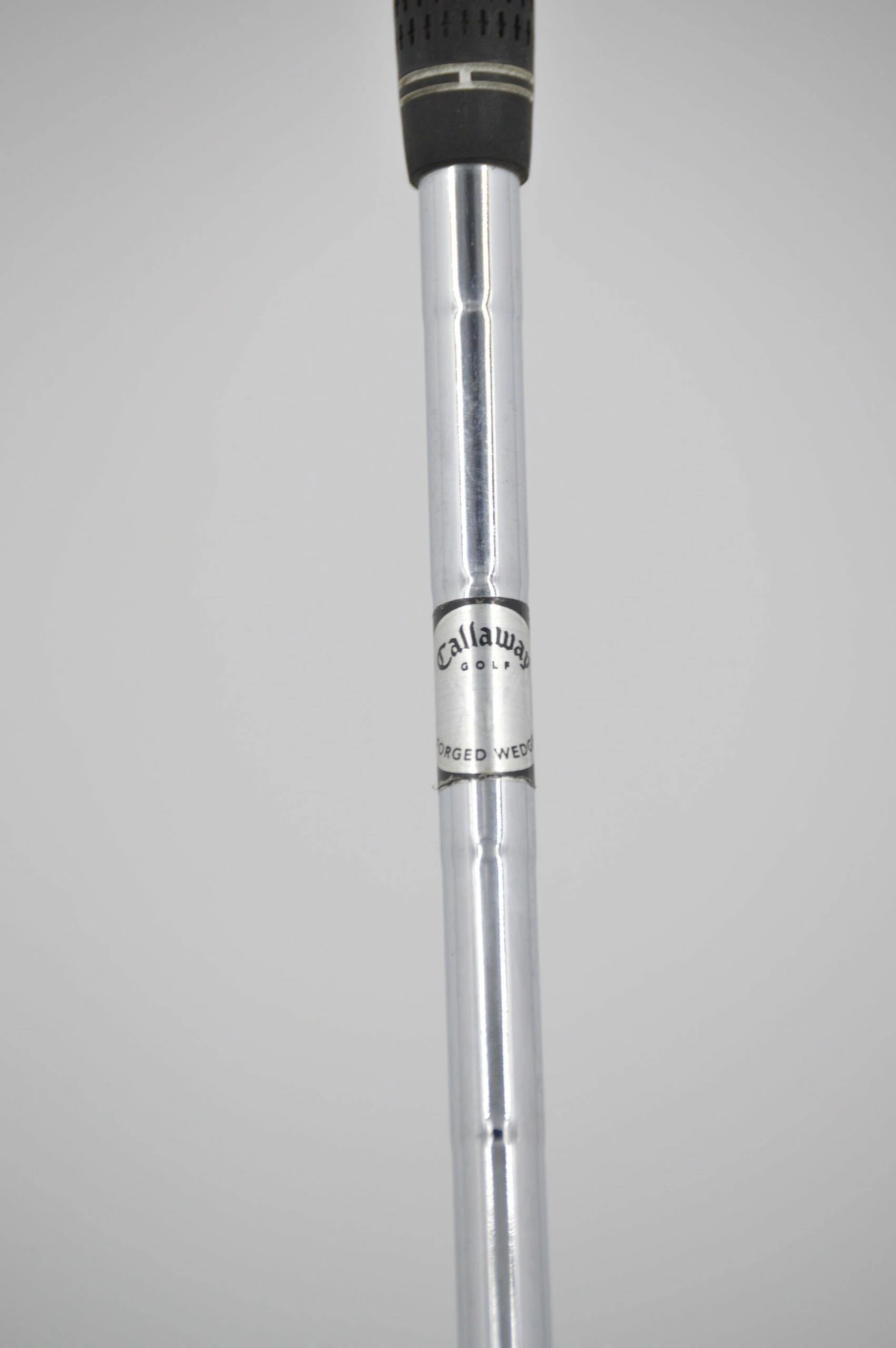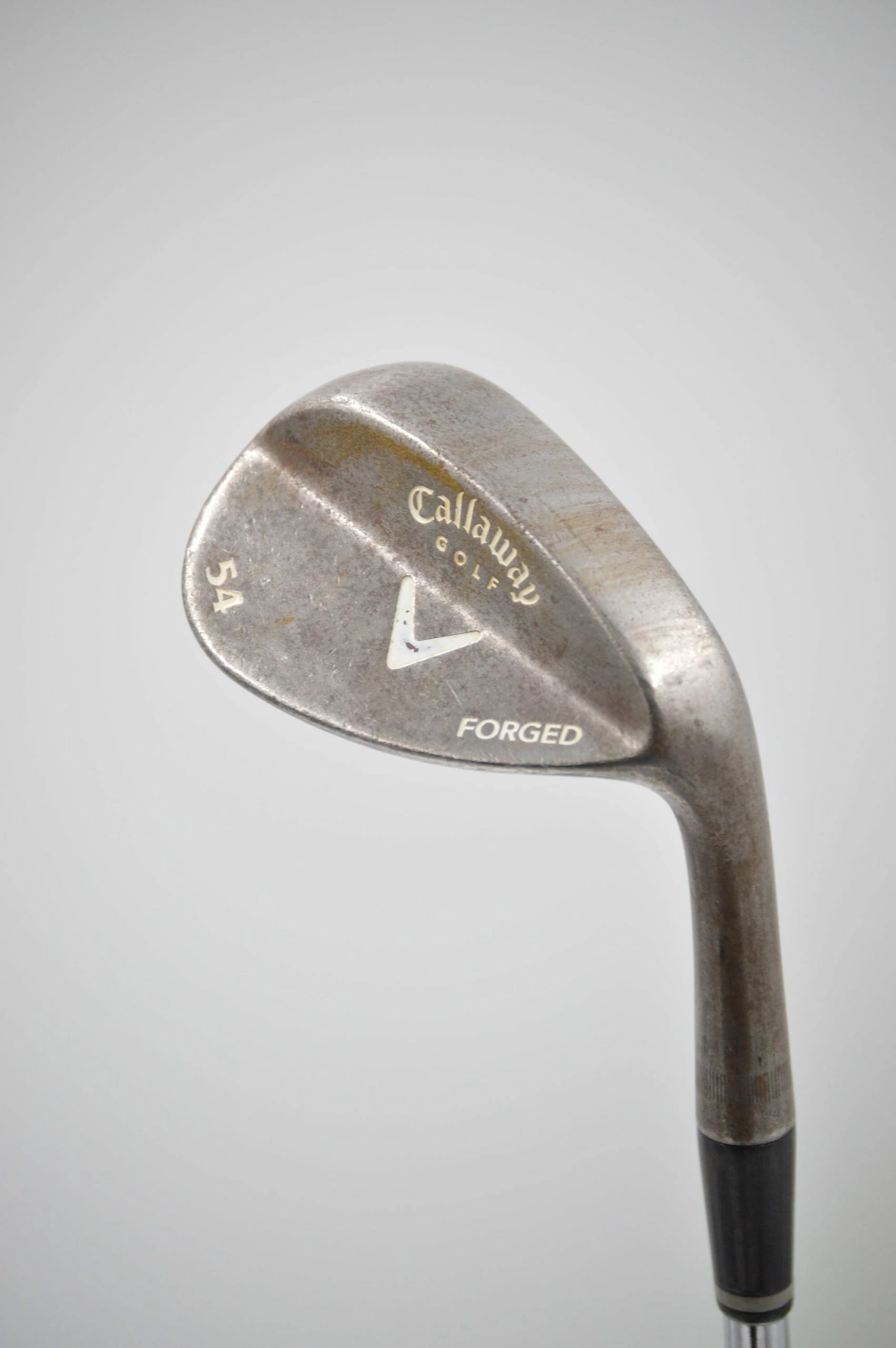Wedge is in fair condition with heavy wear to the head and face. Shaft is stock in wedge flex with a midsize Golf Pride Tour Velvet grip. Loft is 54 degrees.