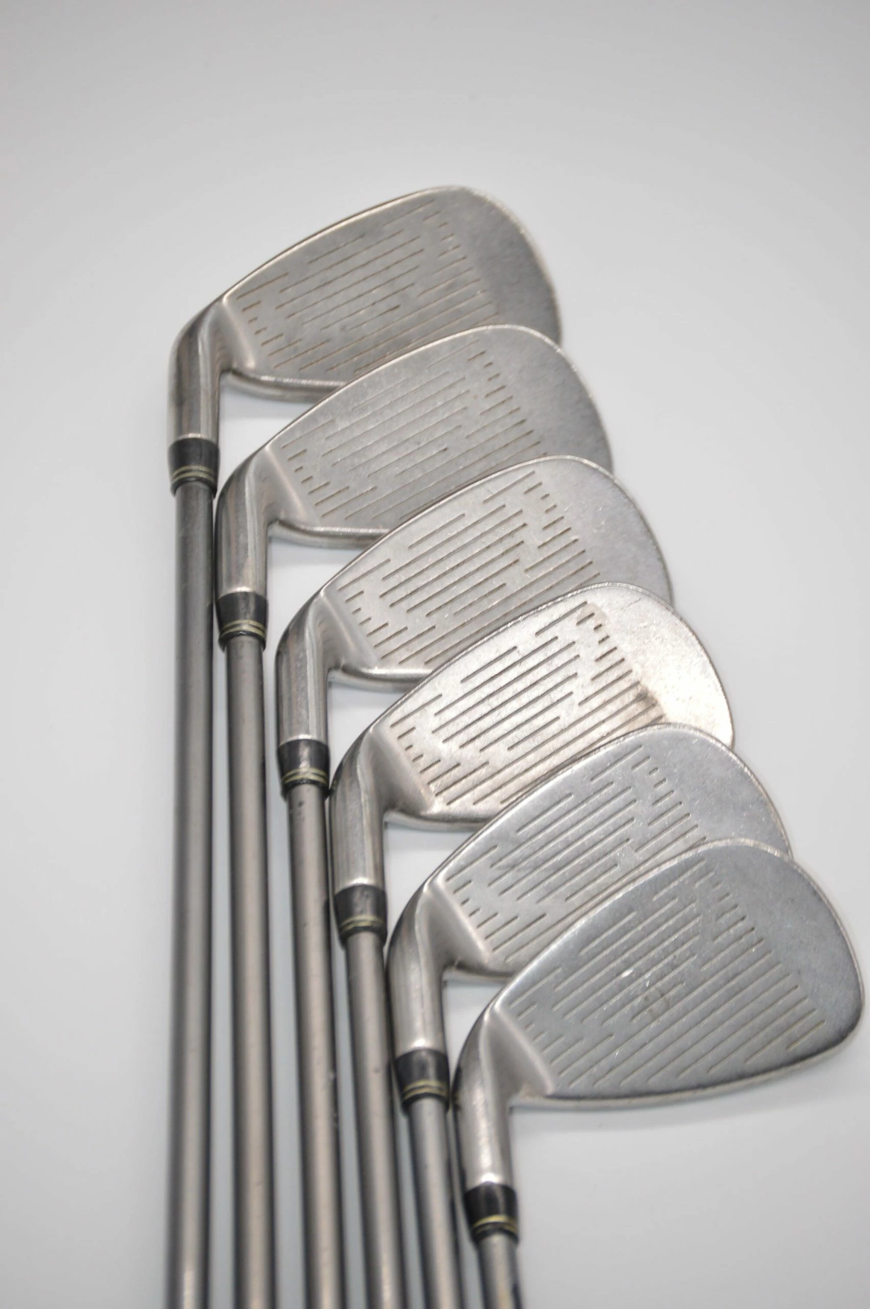 Set includes Cobra 3400 I/XH 5-PW. Irons are in good condition with light wear on the heads and faces. Shafts are Graphite Design YS-5.1 55g in R flex with Lamkin Crossline grips.