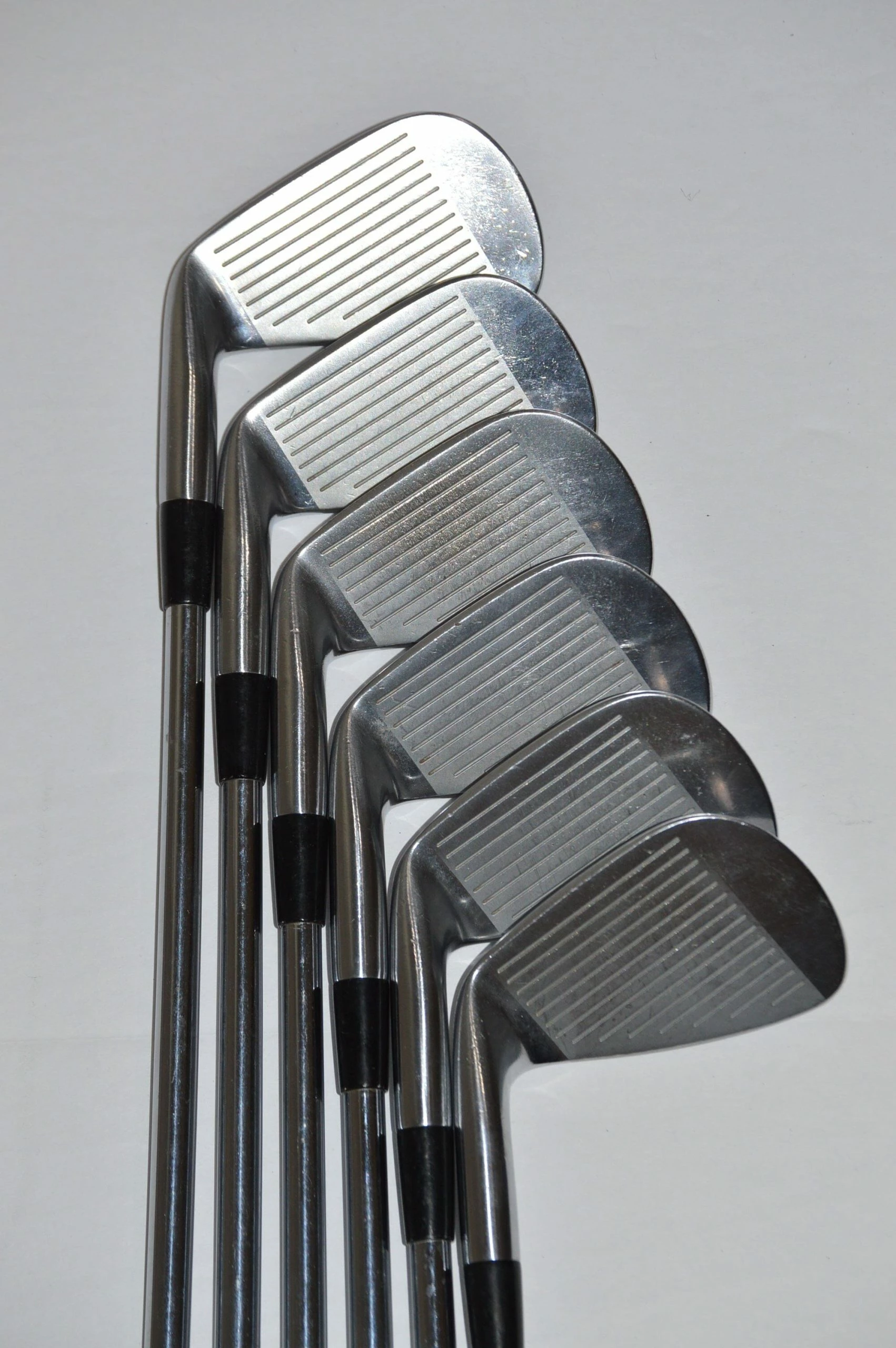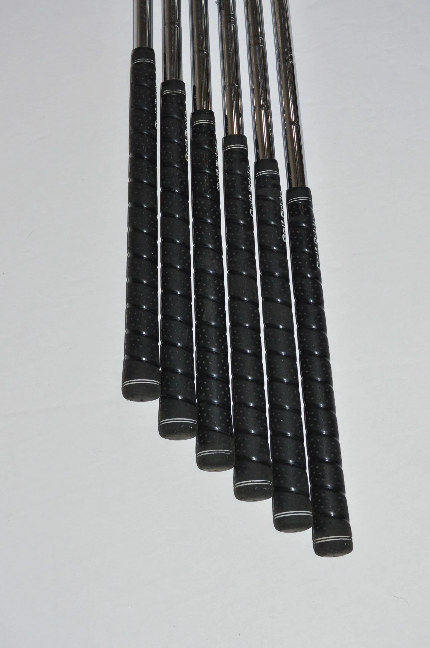 Iron set includes PW-5. Irons are in good condition with light wear on the heads and faces. Shafts are steel in S flex with Tour Wrap Golf Pride grips. Item #: 5972